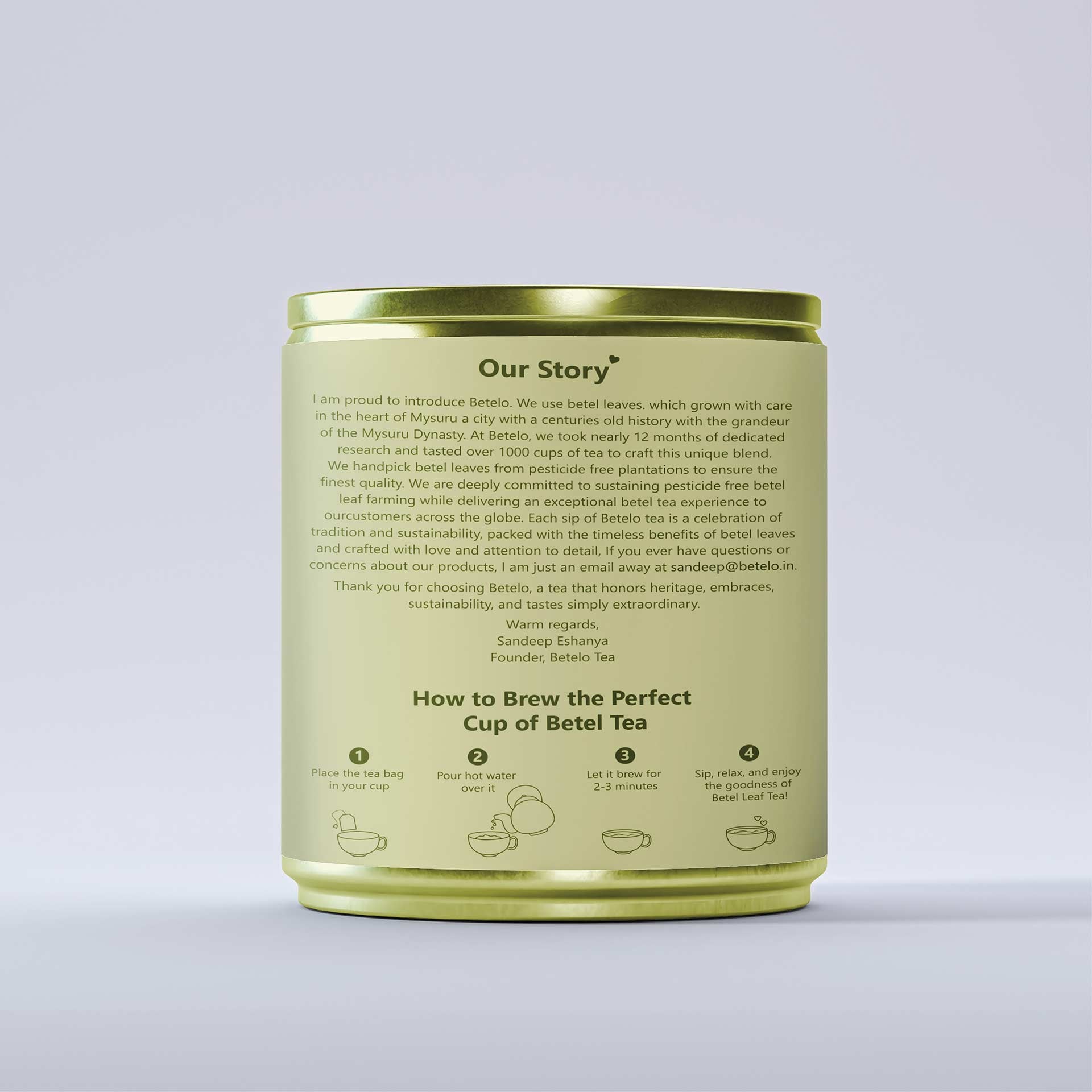 BetelO contains carefully processed betel leaf tea blended with natural herbs, offering a unique and refreshing wellness experience. Each blend is thoughtfully packed in premium, food-grade pyramid tea bags to ensure purity, flavor, and aroma in every sip.